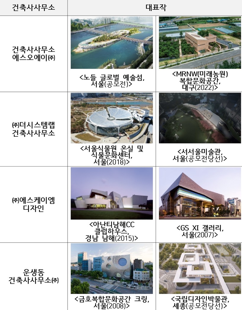 국내팀으로는 ▲건축사사사무소 에스오에이㈜ ▲㈜더시스템랩 건축사사무소 ▲㈜에스케이엠 디자인 ▲운생동 건축사사무소㈜ 총 4팀이 참여한다.