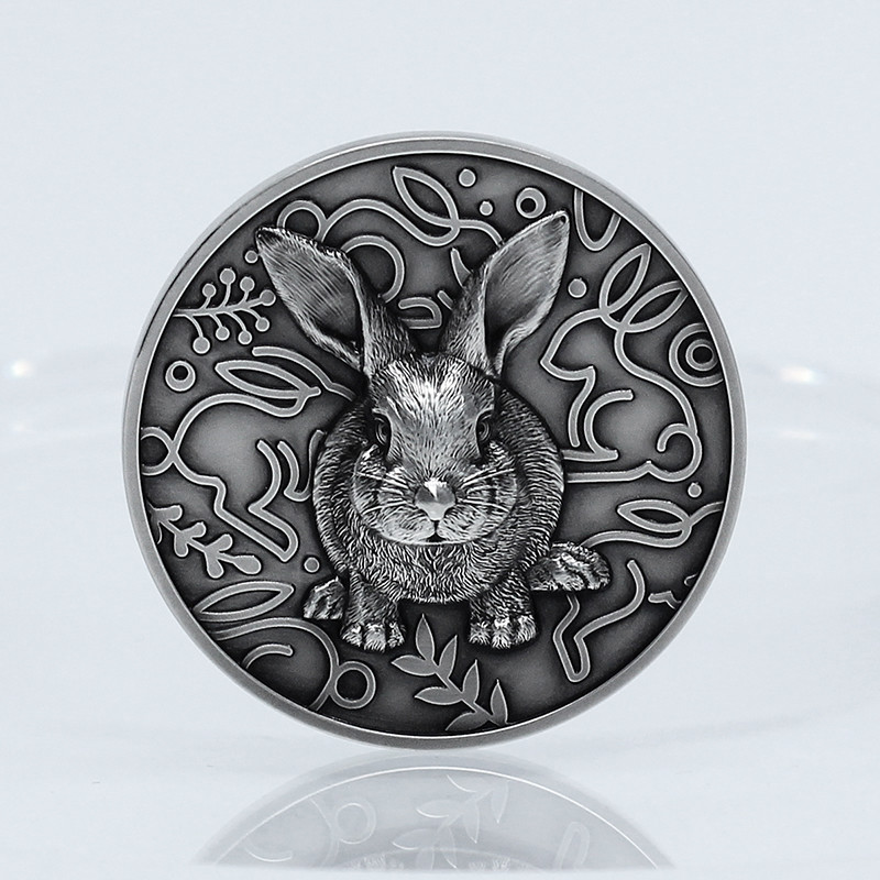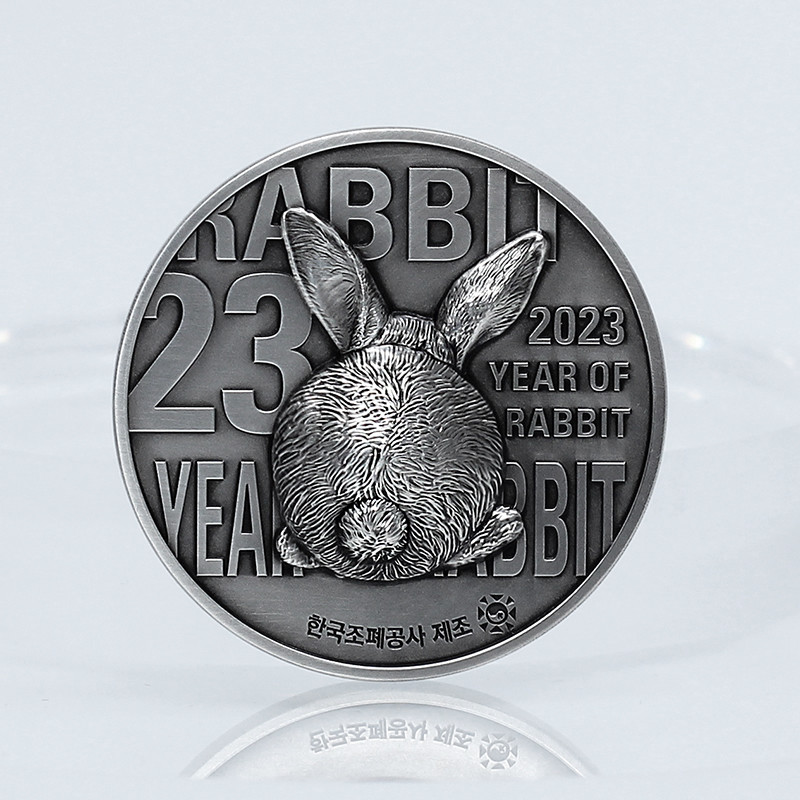 메달 앞면에는 토끼의 정면 모습을, 뒷면에는 토끼의 후면 모습을 고심도 기술로 표현하여 마치 한 마리의 토끼가 뛰어 나올듯한 모습을 담았다. 메달 뒷면에는 ‘2023 YEAR OF RABBIT’, 한국조폐공사명 및 홀마크를 담아 제품의 신뢰와 품위를 높였다. 특히 앤틱피니쉬 처리를 통해 토끼의 입체감을 더하였고, 제품을 실제 만져볼 수도 있도록 제작하였다.