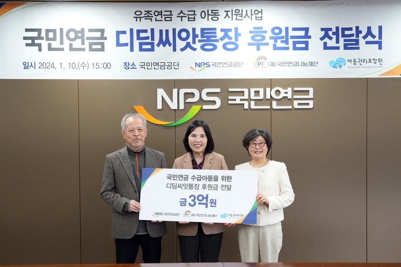 [일요주간=김영란 기자] 국민연금공단(이사장 김태현)은 취약계층 아동의 자립을 위한 ‘디딤씨앗통장’ 후원금을 아동권리보장원(원장 정익중)에 전달했다고 10일 밝혔다.