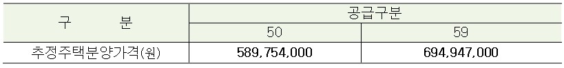 | ▲ 위례지구 A1-14블록 특별공급 추정 주택분양가격 (표=SH공사) |