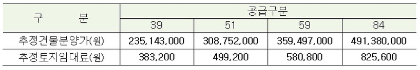 | ▲ 마곡지구 16단지 특별공급 추정 건물분양가격 및 토지임대료 (표=SH공사) |