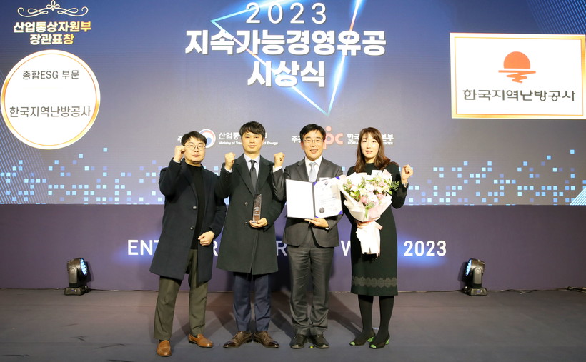 | ▲ 지속가능경영유공 시상식 관련 사진(좌측 두번째부터 정기종 한난 기획부장, 송현규 한난 부사장) (사진=한국지역난방공사) |