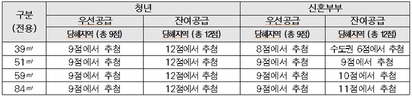 특별공급 가점 만점은 우선공급 9점, 잔여공급 12점이다.