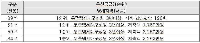 | ▲ 특별공급 당첨하한선(위례 A1-14블록) (표=SH공사) |
