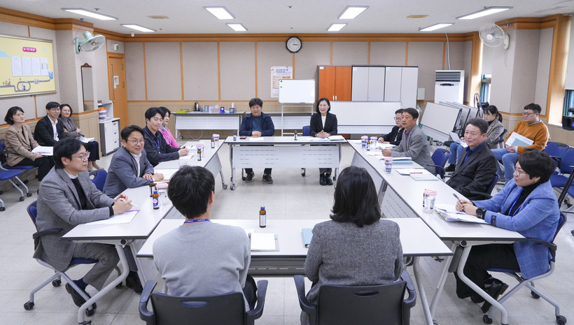 이어진 간담회에는 강 시장을 비롯해 성유석 일가정양립지원본부장, 직원들이 참석했으며, 중소사업장의 초등학부모 10시 출근제 도입 확대 방안 등이 집중적으로 논의됐다.