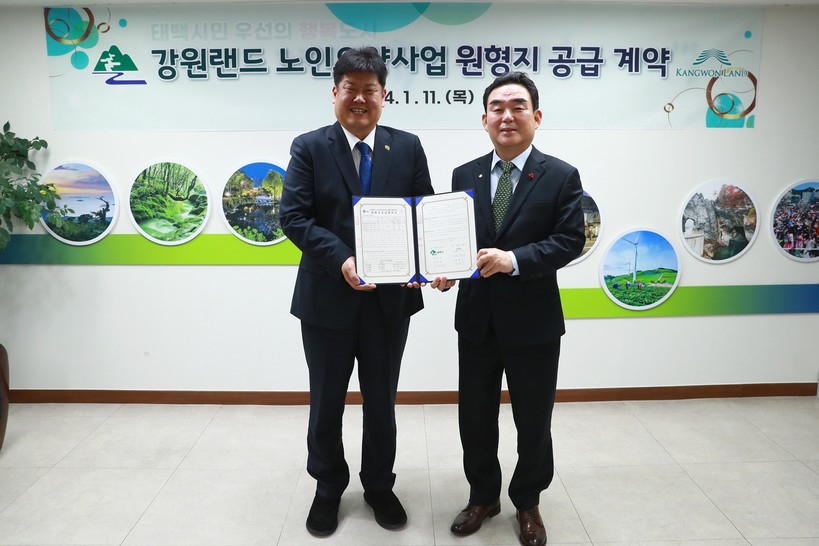 [일요주간=김영란 기자] 강원랜드는 지난 11일 태백시청 집무실에서 이상호 태백시장, 최철규 강원랜드 대표이사직무대행 등 업무관계자들이 참석한 가운데 ‘시니어헬스케어센터’원형지 공급 계약을 체결했다고 12일 밝혔다.