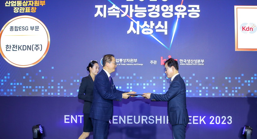 [일요주간=김영란 기자] 한전KDN(사장 김장현)은 14일 서울 여의도 전국경제인연합회 FKI타워에서 개최된 ‘2023 지속가능경영유공 정부포상’ 시상식에서 산업통상자원부 장관 표창을 수상했다.