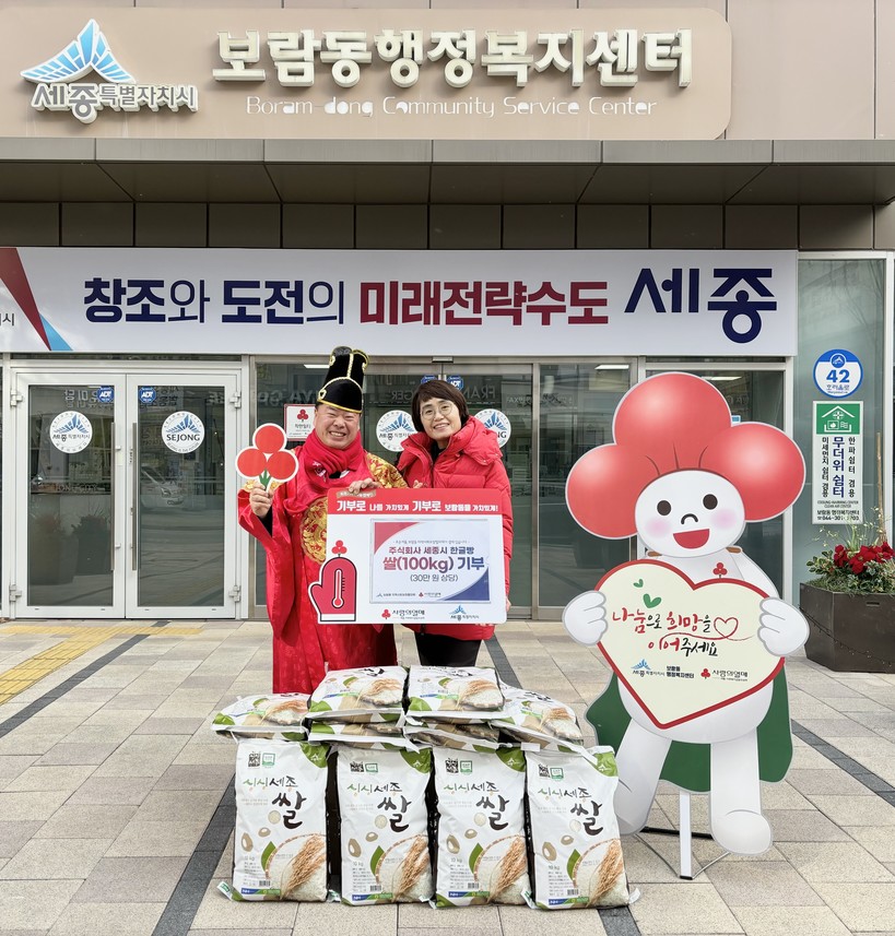 ㈜세종시 한글빵은 보람동 지역사회보장협의체를 통해 보람동 지역주민들을 위한 사랑의 쌀 100㎏을 기탁했다.