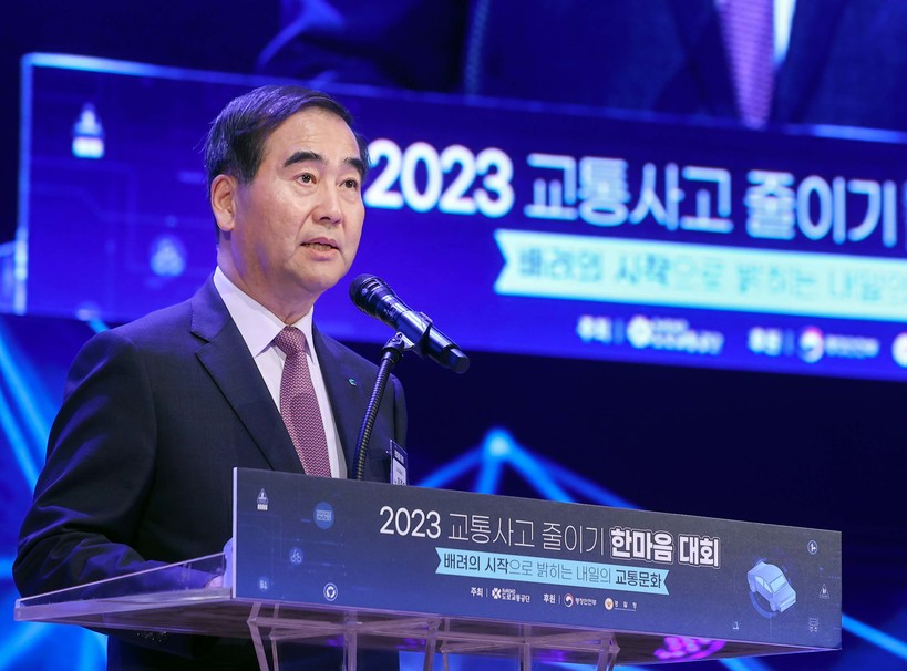 | ▲ 11월 3일(수) 서울 코엑스에서 개최된 2023 교통사고 줄이기 한마음대회에서 이주민 도로교통공단 이사장이 대회사를 하고 있다. <사진=도로교통공단> |