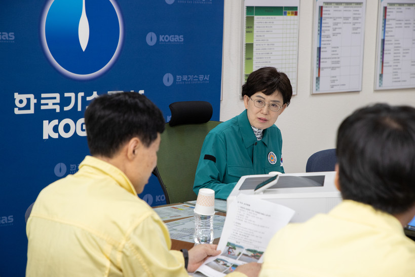 | ▲ 가스공사는 7월 16일 집중호우에 대비해 안전관리상황과 천연가스 공급시설을 긴급점검했다(안전상황보고를 받고있는 최연혜 사장_가운데)(사진=가스공사) |