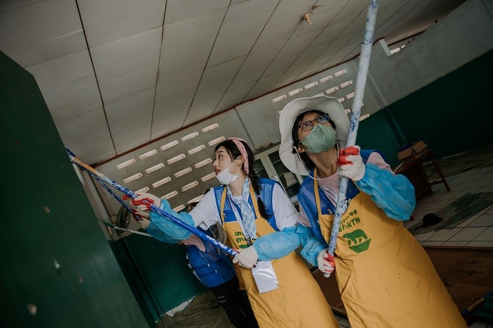 ▲ KT&G복지재단이 인도네시아와 베트남에 대학생 해외봉사단 ‘상상위더스’ 약 80여명을 파견해 오는 19일까지 봉사활동을 펼친다. 사진은 지난 14일 인도네시아 현지 대학생들과 실시한 연합봉사에서 교육 환경 개선 활동을 진행하는 모습. (사진=KT&G) |