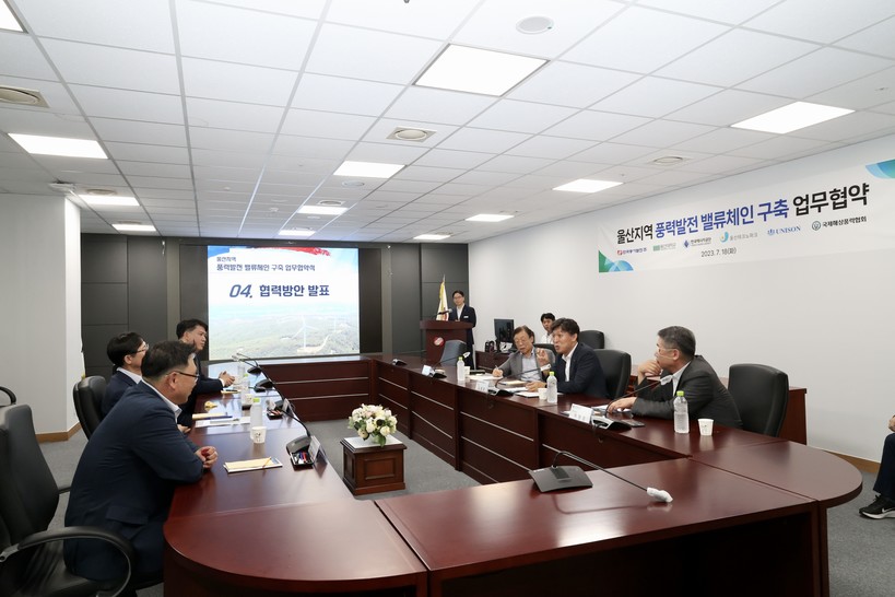 | ▲ 울산지역 풍력발전 밸류체인 구축 협약 체결(사진=동서발전) |