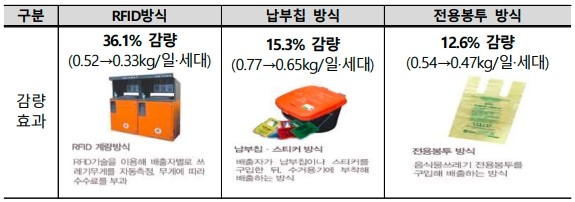 이는 디지털 기술을 활용한 RFID종량제가 다른 종량제 제도에 비해 음식물 낭비와 음식물쓰레기 배출을 감량하는데 긍정적인 효과가 있음을 의미한다. 가정에서 음식물쓰레기 배출 시 무게와 수수료를 즉시 확인할 수 있어 전용봉투 등의 방식보다 감량에 대한 동기부여가 될 수 있기 때문이다.