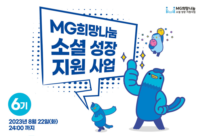 [일요주간=조무정 기자] 새마을금고중앙회가 8월 1일부터 22일까지 약 3주 간 ‘MG희망나눔 소셜성장 지원사업’ 6기 참여기업을 모집한다고 밝혔다.
