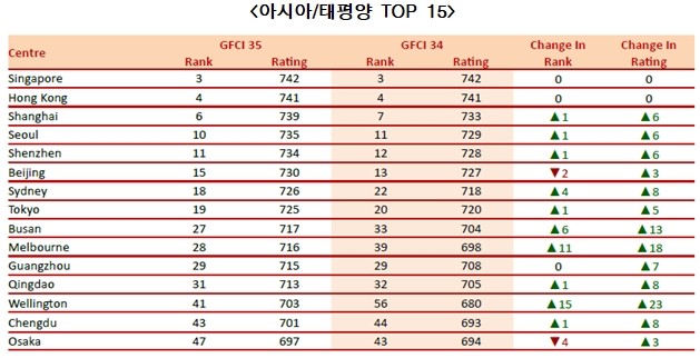 - '아시아 태평양지역 금융도시' 9위, '향후 중요성이 높아질 금융중심지 15대 도시' 7위 선정돼
