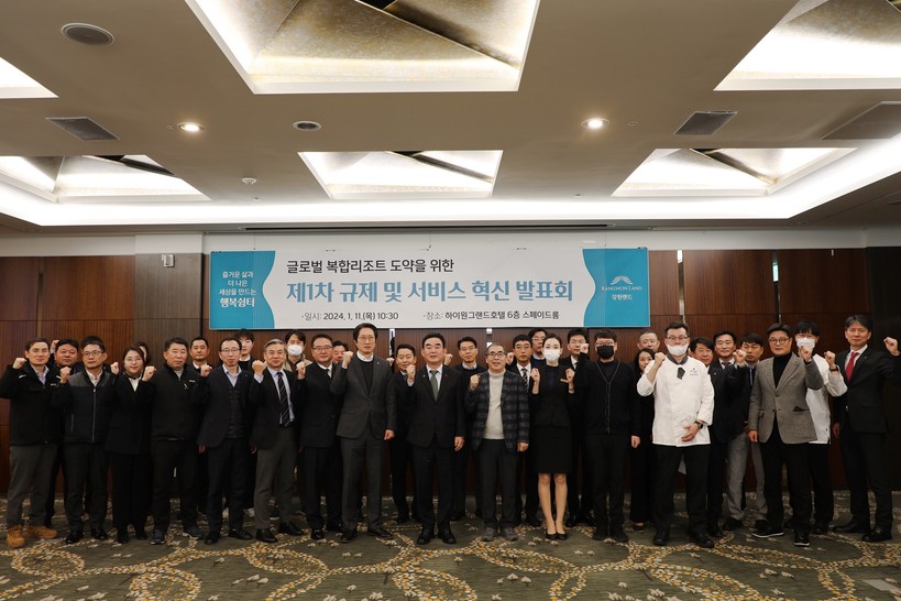 | ▲ 글로벌 복합리조트 도약을 위한 제1차 규제 및 서비스 혁신 발표회 단체 촬영(사진=강원랜드) |