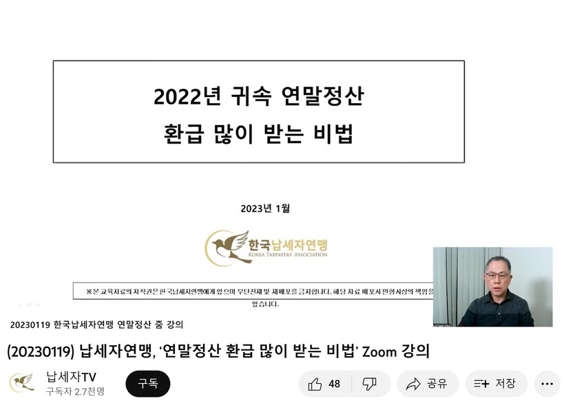 한편 연맹의 연말정산 동영상은 연맹 홈페이지의 연말정산 코너 또는 유튜브 ‘납세자TV’ 채널을 통해 무료로 이용할 수 있다.