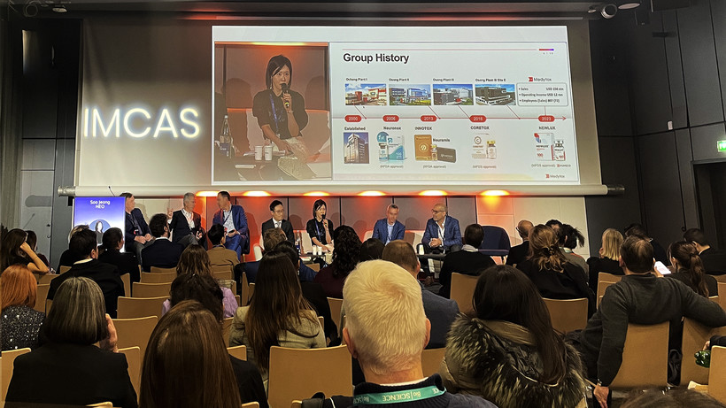 ▲ 지난 1일(현지 시간) 국제미용성형학회(IMCAS)에서 열린 '보툴리눔 톡신 제제 파이프라인과 미래' 특별 세션에서 분당 스킨영클리닉 허수정 원장이 발표를 하고 있다. (사진=메디톡스 제공)