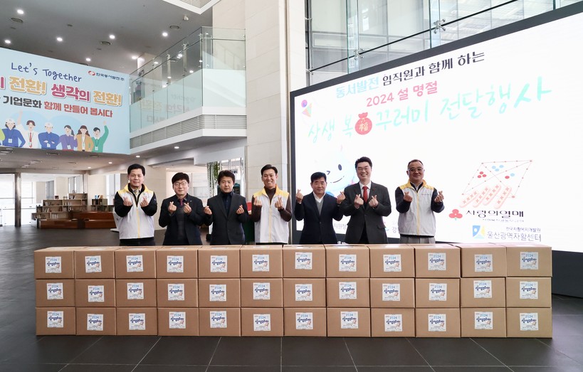 [일요주간=김영란 기자] 한국동서발전(주)(사장 김영문)가 7일(수) 울산 중구 본사에서 설 명절을 맞이하여 어려운 이웃을 위한 복(福) 꾸러미 음식을 전달했다.