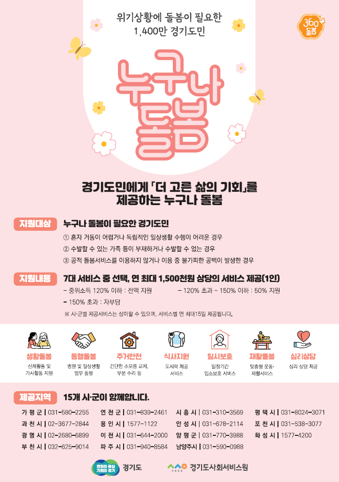 허승범 경기도 복지국장은 “경기도와 시군이 협력해 누구나 돌봄 사업을 순조롭게 진행하고 있다”며 “‘누구나 돌봄’이 기존 돌봄의 틈새를 보완해 경기도민의 돌봄공백을 해소하는 발판이 되도록 최선을 다하겠다”고 말했다.