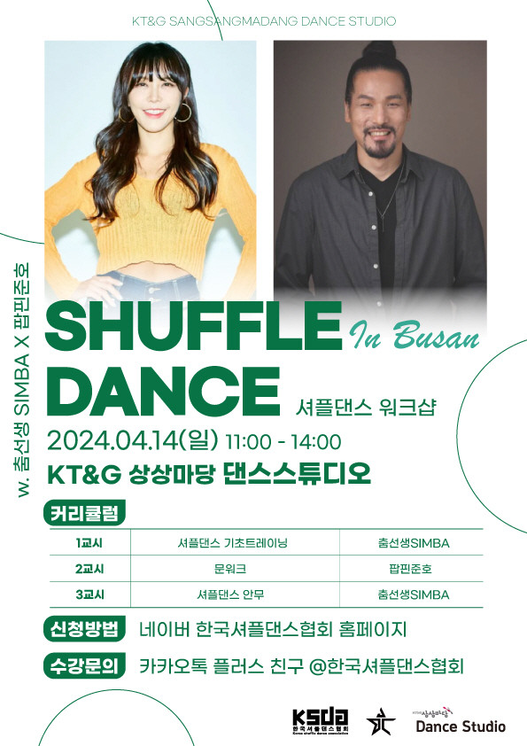 ▲ KT&G 상상마당이 한국셔플댄스협회와 협업해 상상마당 부산 댄스 스튜디오에서 오는 14일 ‘원데이 댄스 클래스’를 열고 안무 특강을 진행한다. 사진은 ‘원데이 댄스 클래스’ 포스터(이미지=KT&G) |