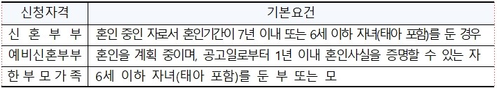 | ▲ 신혼희망타운 신청자격별 기본요건 (표=LH) |