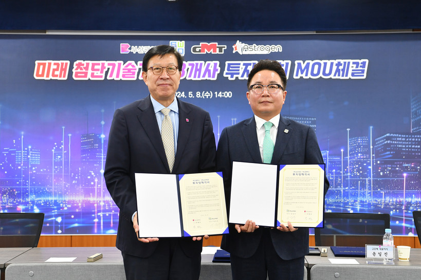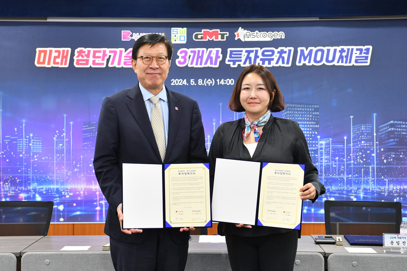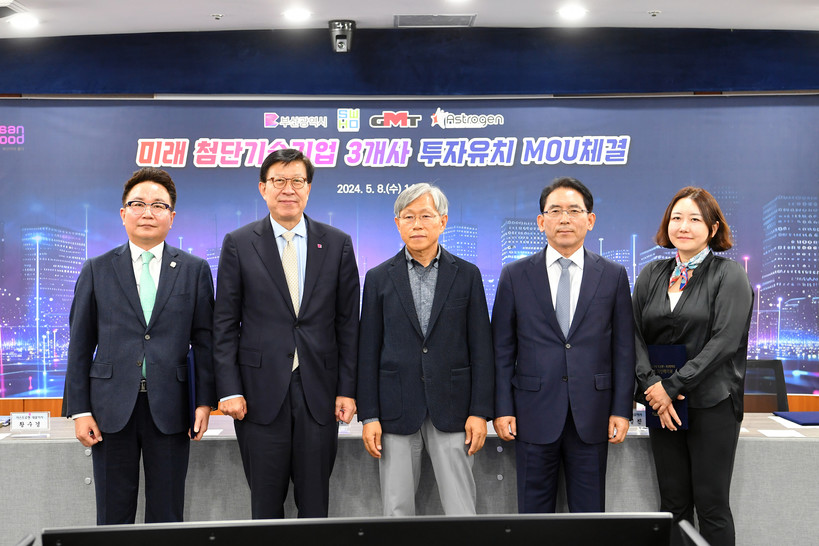 부산시(시장 박형준)는 오늘(8일) 오후 2시 시청 영상회의실에서 미래 첨단기술기업인 고모텍㈜, ㈜아스트로젠, ㈜쇼우테크와와 역내 이전 및 신설 투자 양해각서를 체결한다고 밝혔다.