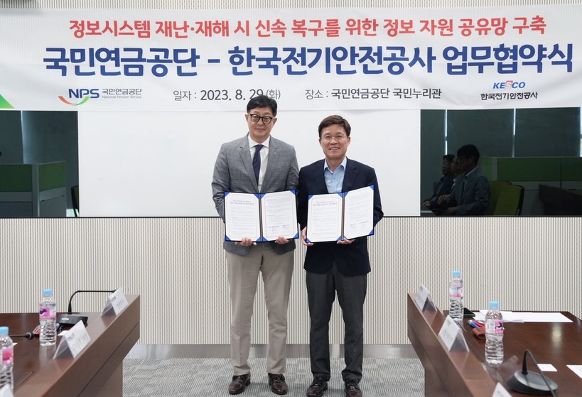 [일요주간=김영란 기자] 국민연금공단(이사장 김태현)은 정보시스템 장애 발생 시 신속한 복구를 위해 한국전기안전공사(사장 박지현)와 업무협약을 체결했다고 29일 밝혔다.