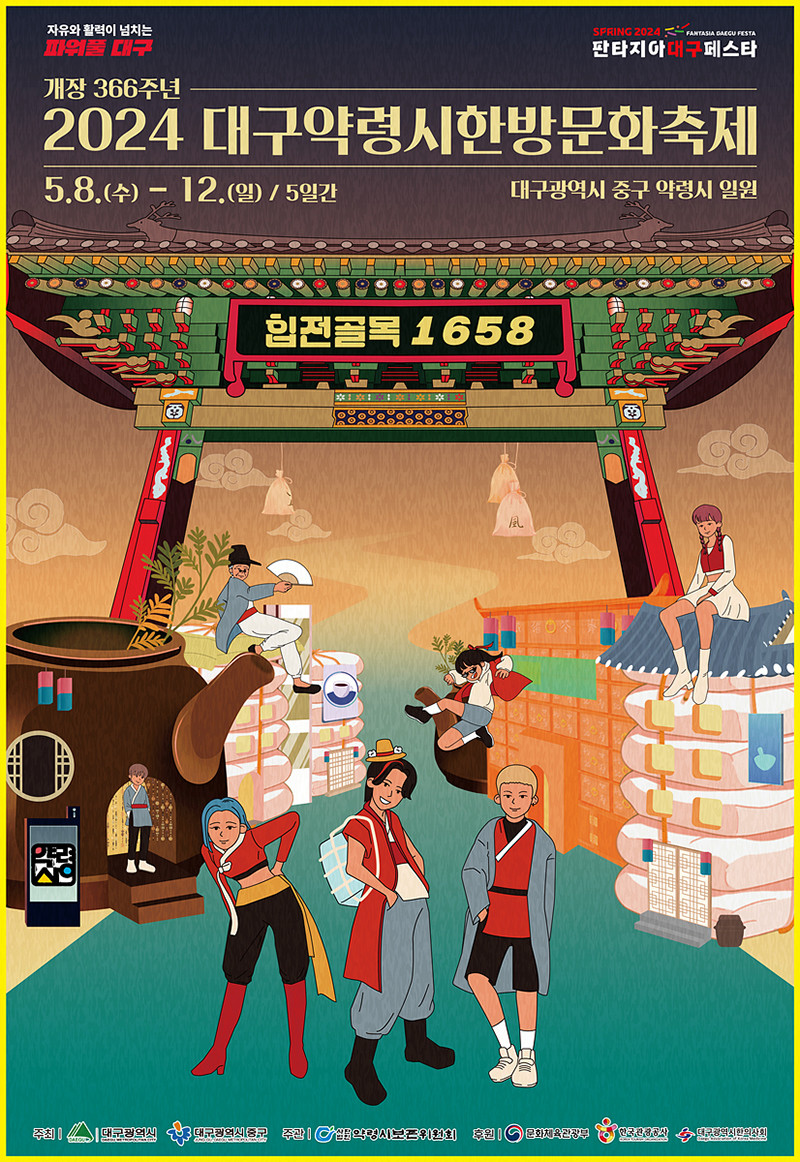 대구광역시와 대구광역시 중구가 주최하고 (사)약령시보존위원회가 주관하는 이번 축제는 개장 366주년을 맞아 ‘힙전골목 1658’을 주제로 전통 한의약에 최신 문화 트렌드를 접목한 힙트래디션(Hip Tradition) 축제로 구성했다.