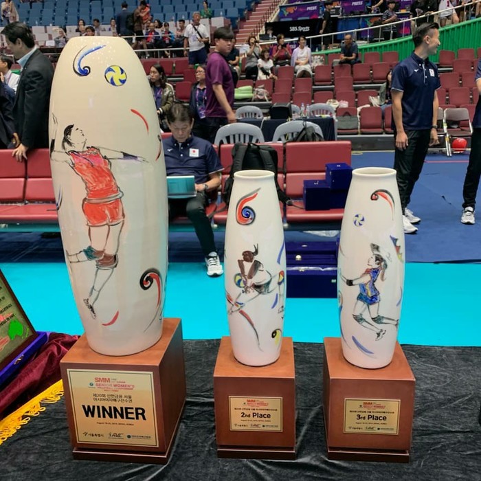 ▲ 김연경을 비롯하여 배구선수들을 넣은 ‘세상에 하나 밖에 없는 한국형 트로피’를 만들어서 배구대회의 시상식에 한국성과 예술성을 융합한 최고의 작품이란 평을 들으니 문화예술인으로서 뿌듯합니다. |