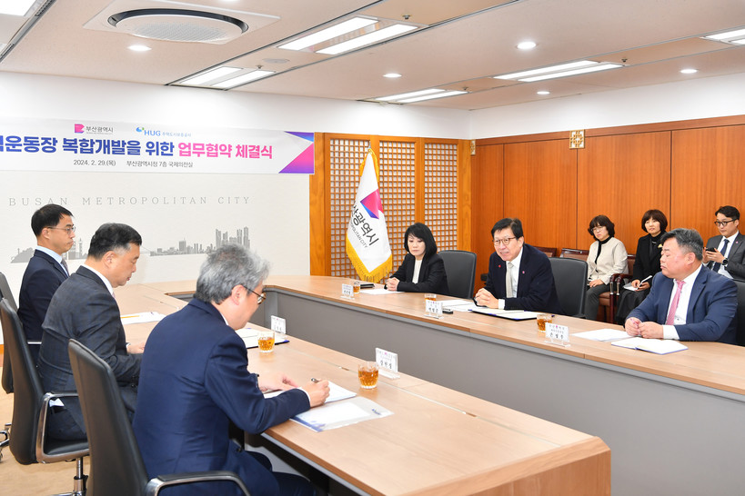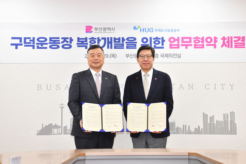 [일요주간=김영란 기자] 부산시(시장 박형준)는 오늘(29일) 오후 2시 30분 시청 국제의전실에서 주택도시보증공사와 구덕운동장 복합개발을 위한 업무협약(MOU)을 체결한다고 밝혔다.