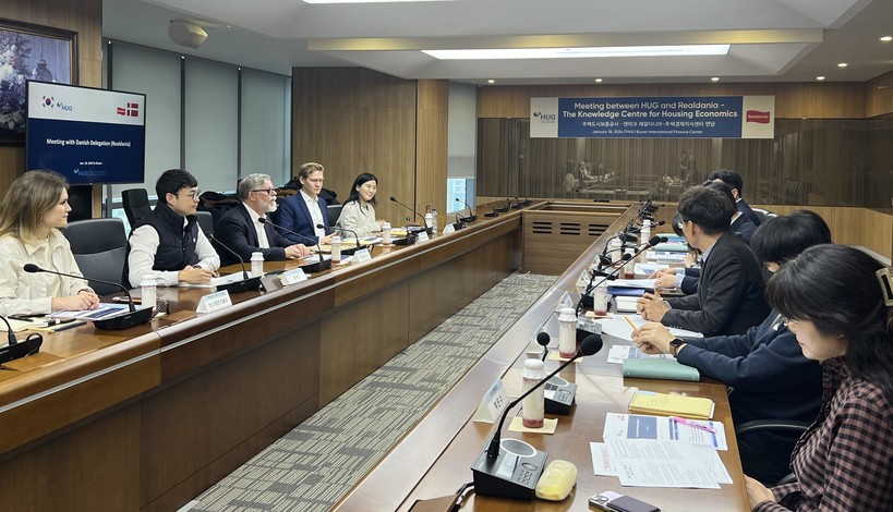 | ▲ 1월 18일, HUG와 덴마크 레알다니아-주택경제지식센터 대표단이 양국 주택시장 현안과 주택정책 발전 방안을 논의하고 있다. (사진=HUG) |