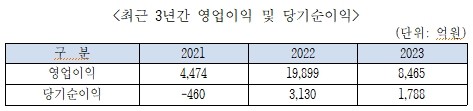 ▲ 최근 3년간 영업이익 및 당기순이익(표=한국석유공사) |