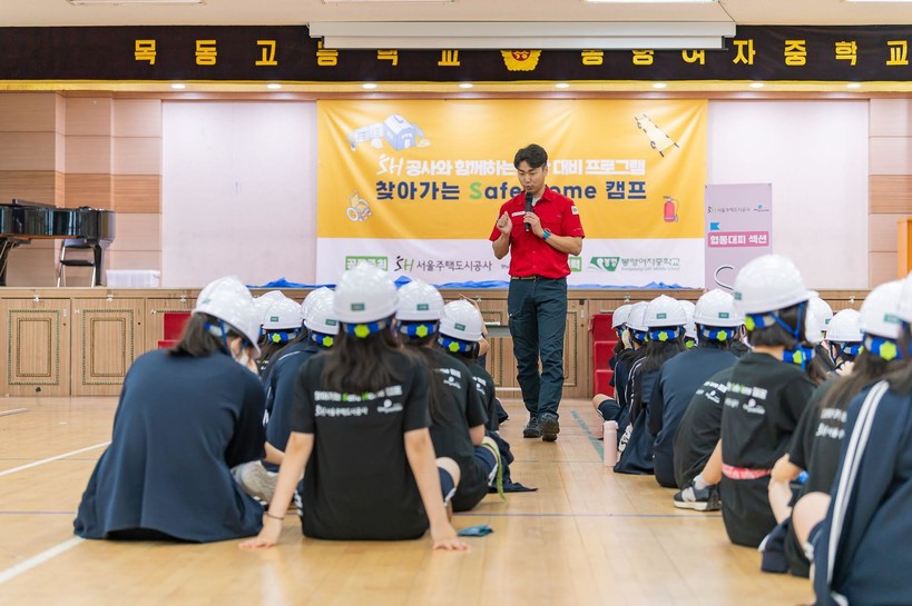SH공사와 더프라미스는 17일 서울 양천구 봉영여자중학교 2학년 학생 141명을 대상으로 시민과 함께하는 재난 대비 훈련 프로그램 ‘찾아가는 Safe Home 캠프(찾아가는 SH캠프)’를 개최했다고 밝혔다.