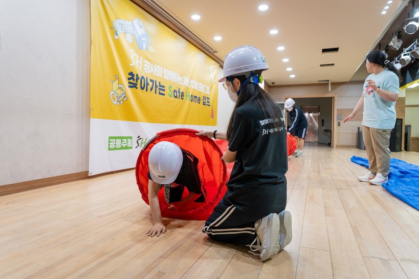 [일요주간=김영란 기자] 서울주택도시공사(SH공사, 사장 김헌동)와 재난재해 긴급구호 전문기관 더프라미스가 중학생들을 대상으로 보다 쉽게 재난안전에 대해 배울 수 있는 체험교육 프로그램을 진행했다.