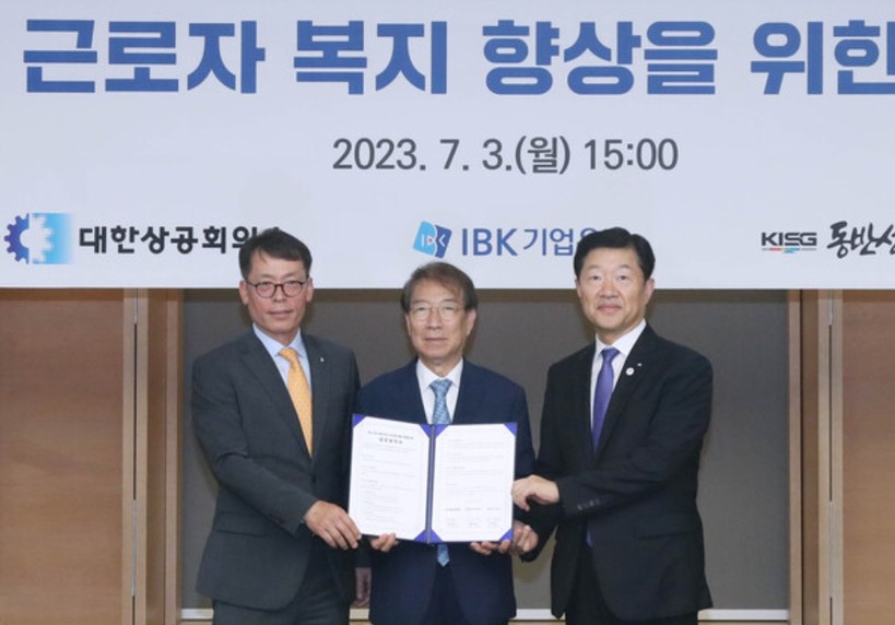 [일요주간=노현주 기자] BK기업은행은 3일 서울시 중구 대한상공회의소 챔버라운지에서 대한상공회의소·동반성장연구소와 ‘중소기업 근로자 복지 및 문화생활 지원을 위한 업무협약’을 했다.