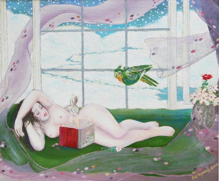 작년 서울오픈아트페어를 통해 작품 ‘다나에와 페르세우스’, ‘꿈속에서 또다시 꿈을 꾸며’ 소개했고, 이후 거의 1년만에 ‘Zenith(절정)’, ‘Calmness(평온함)’ 작품으로 드림아트페어에 참가한 것. LPG그룹 전멤버 가수 이오타도 유명인사 작가로 참여했다.