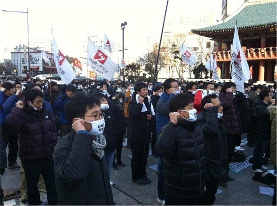 ▲ 전국 20개 MBC 노조 ‘김재철 사장 퇴진과 공영방송 MBC 정상화’를 위한 총파업 출정식.