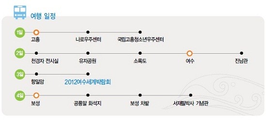 첫 방문지는 나로 우주센터로, 우주개발 진흥 기본 계획을 위해 세운 한국항공우주연구원(KARI)의 우리나라 최초 인공위성 발사장이 있는 곳이다. 나로 우주센터 내부는 일반에 공개하고 있지 않아 견학을 할 수 없지만, 나로 우주센터를 자세히 소개한 우주과학관에서 아쉬움을 달래고 여러 궁금증을 풀 수 있다.