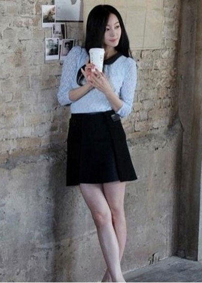 사진속 한예슬은 하늘색 블라우스에 검정 스커트를 매치해 각선미를 뽐냈다.