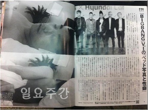 [일요주간=박지영기자] 일본 유명 주간지 프라이데이는 지난 14일 판에서 ‘빅뱅의 침대 사진과 버릇’이라는 제목의 기사를 게재했다.