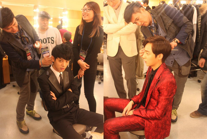 사진 속 정준영은 거울 보다는 카메라를 응시하며 자신감 넘치는 모습이다. 로이킴은 거울을 바라보며 편안한 자세로 헤어를 받고 있다.