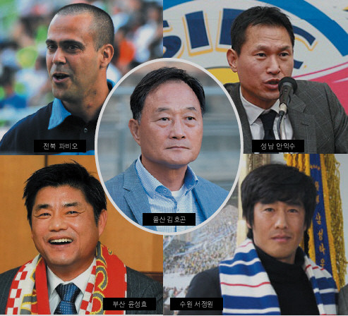 올 시즌 1부 리그에서 활약한 16개 팀 가운데 사령탑 입지가 안정적이라는 평가를 받는 팀은 3대 대회의 우승팀 정도다. K리그 시즌 우승을 차지한 FC서울 최용수 감독과 FA컵 우승을 차지한 포항 스틸러스 황선홍 감독, 여기에 ACL(AFC Champions League) 우승을 차지한 김호곤 울산 현대 감독이 포함됐다. 최고령 감독인 김 감독은 이 가운데 유일하게 팀과 재계약에 성공했다. 여기에 꾸준한 인기몰이를 하고 있는 제주FC의 박경훈 감독이 재계약을 앞두고 있다는 평가다.