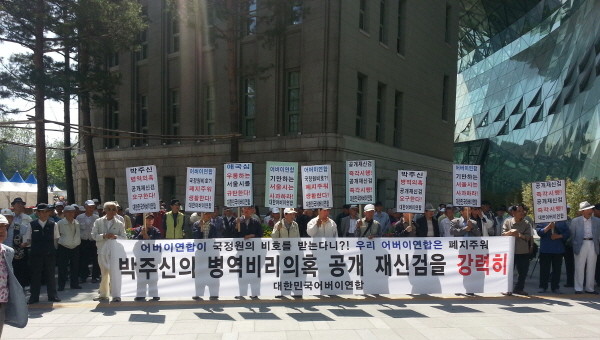 [일요주간= 김진태 기자] 지난 29일, 검찰이 박원순 서울시장의 아들 주신씨(28)에 대한 병역비리 의혹이 무혐의로 결론내자 보수단체인 대한민국어버이연합이 반발하며 공개 재신검을 요구했다.