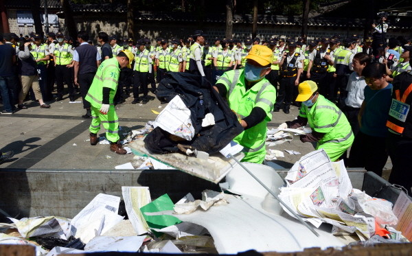 중구는 이날 오전 9시 30분쯤 50여 명을 투입해 대한문 앞 분향소 등을 모두 강제철거했다.