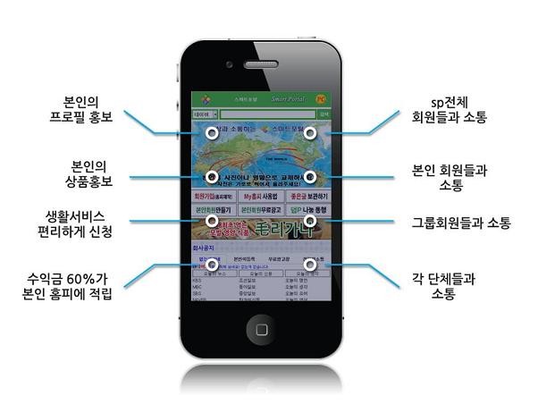 ▲ 스마트포털은 기술의 효용성을 단순한 ‘소통’이 아닌 사용자의 삶의 질을 향상시키려는 ‘가치’의 측면에서 접근했다. 현재 세계적으로 가장 많은 회원수를 확보한 페이스북은 전 세계 사람들을 하나로 연결하는 역할을 하고 있지만 스마트포털은 페이스북 보다 더 쉽게 만들 수 있고 활용 시 수입까지 발생한다. 스타트포털은 회원들간의 소통은 물론이고 홍보와 부가적인 수익까지 동시에 잡을 수 있는 구조다. 즉 개인포털 + 유통수익(컨텐츠/쇼핑몰) + 마케팅 기능이 합쳐져 있기 때문에 편리하고 경제적이다. 따라서 스마트포털은 개인 뿐 아니라 비즈니스를 하는 사람들에게 더욱 인기가 있을 것으로 예상된다. 스마트포털의 비즈니스 수익 구조는 특허출원으로 보호되고 있다.