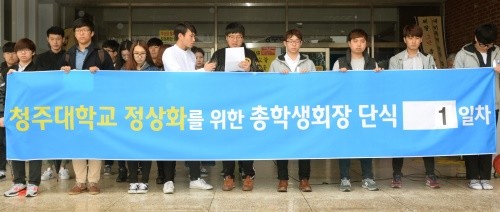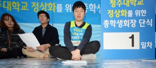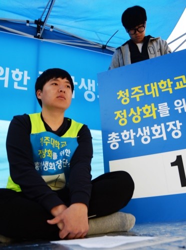 13일 학내 정상화 운동을 벌이고 있는 박명원 총학생회장은 기자회견을 열고 본관 앞 천막농성장에서 무기한 단식농성을 시작했다.