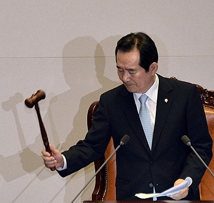 정 의장은 2005년 열린우리당 당의장 시절 새누리당 전신인 한나라당이 4대 입법(국가보안법 폐지, 사립학교법 개정, 과거사진상규명법, 언론관계법)을 반대하며 장외투쟁을 벌이자 "한나라당이 불성실한 태도로 일관할 경우 부득이 다른 야당과 공조해 (법안을) 처리할수밖에 없다"며 단독 국회를 시사하며 한나라당을 압박한 바 있다.