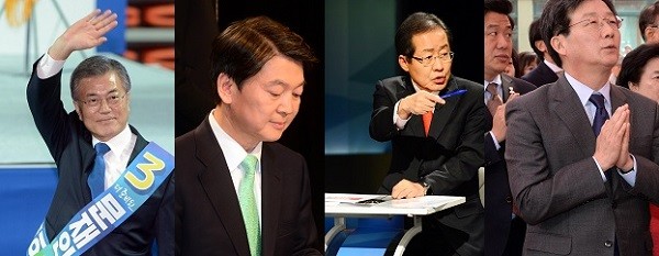 | (오른쪽 부터) 민주당 문재인, 국민의당 안철수, 자유한국당 홍준표, 바른정당 유승민 | ||
