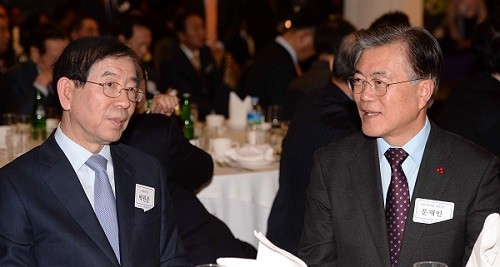 | ▲ 문재인 더불어민주당 전 대표와 박원순 서울시장이 6일 오후 서울 종로구 세종문화회관 세종홀에서 열린 재경전라북도민회 신년인사회에 참석해 대화를 나누고 있다. | ||